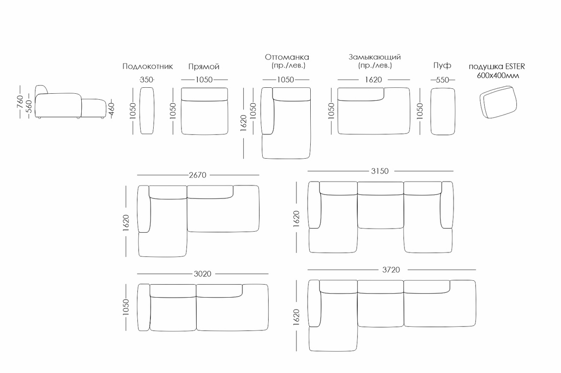 !Подушки в стоимость модулей не входят и приобретаются отдельно
