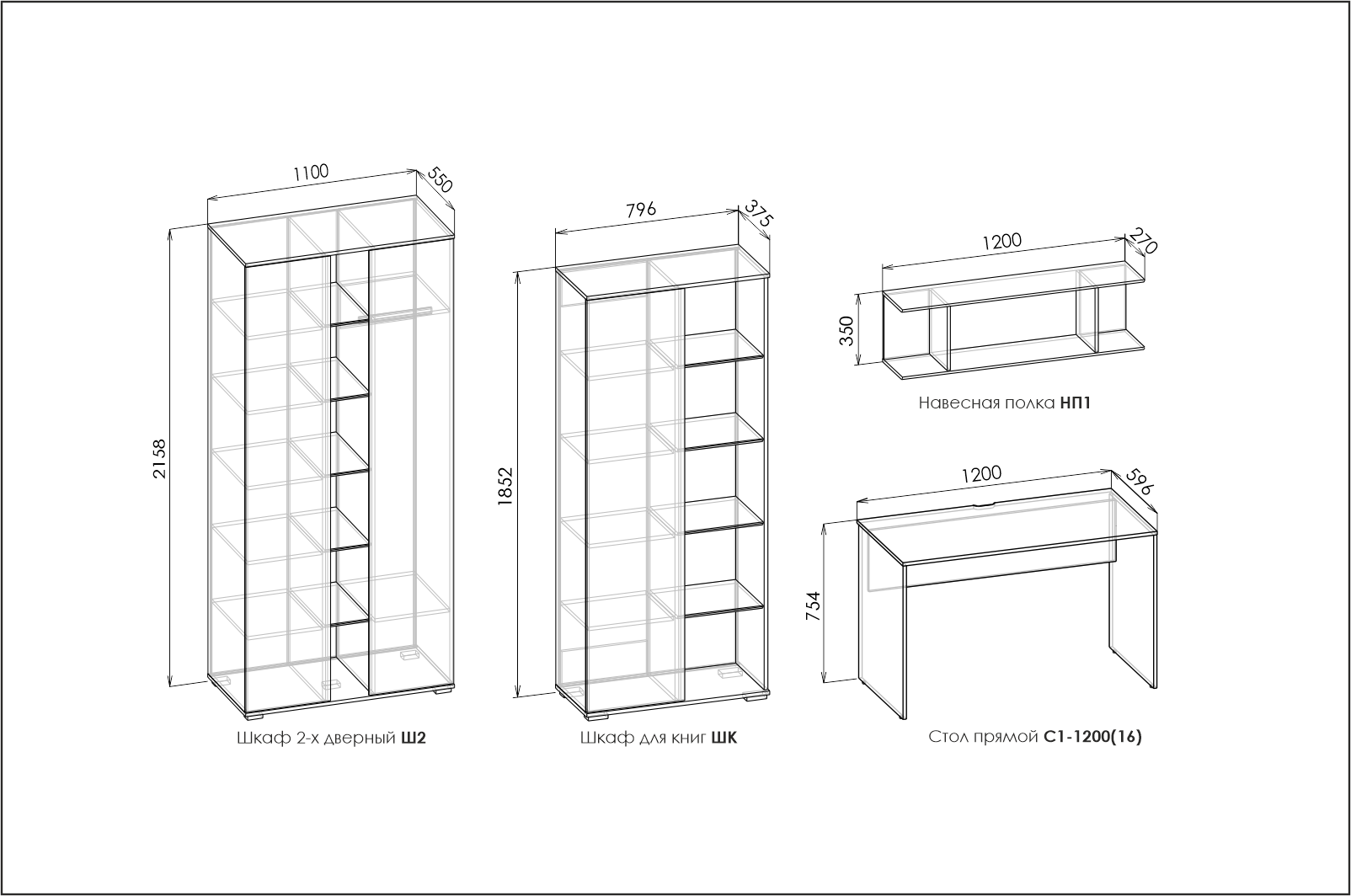 Внимание! Распределительная нагрузка на навесные полки не должна превышать - 10 кг.